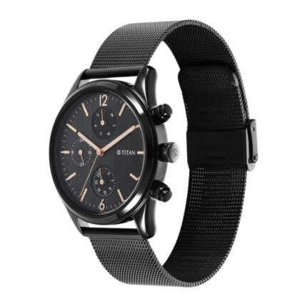 Titan Elmnt Day Date Black Mesh Chain Watch 1805NM03