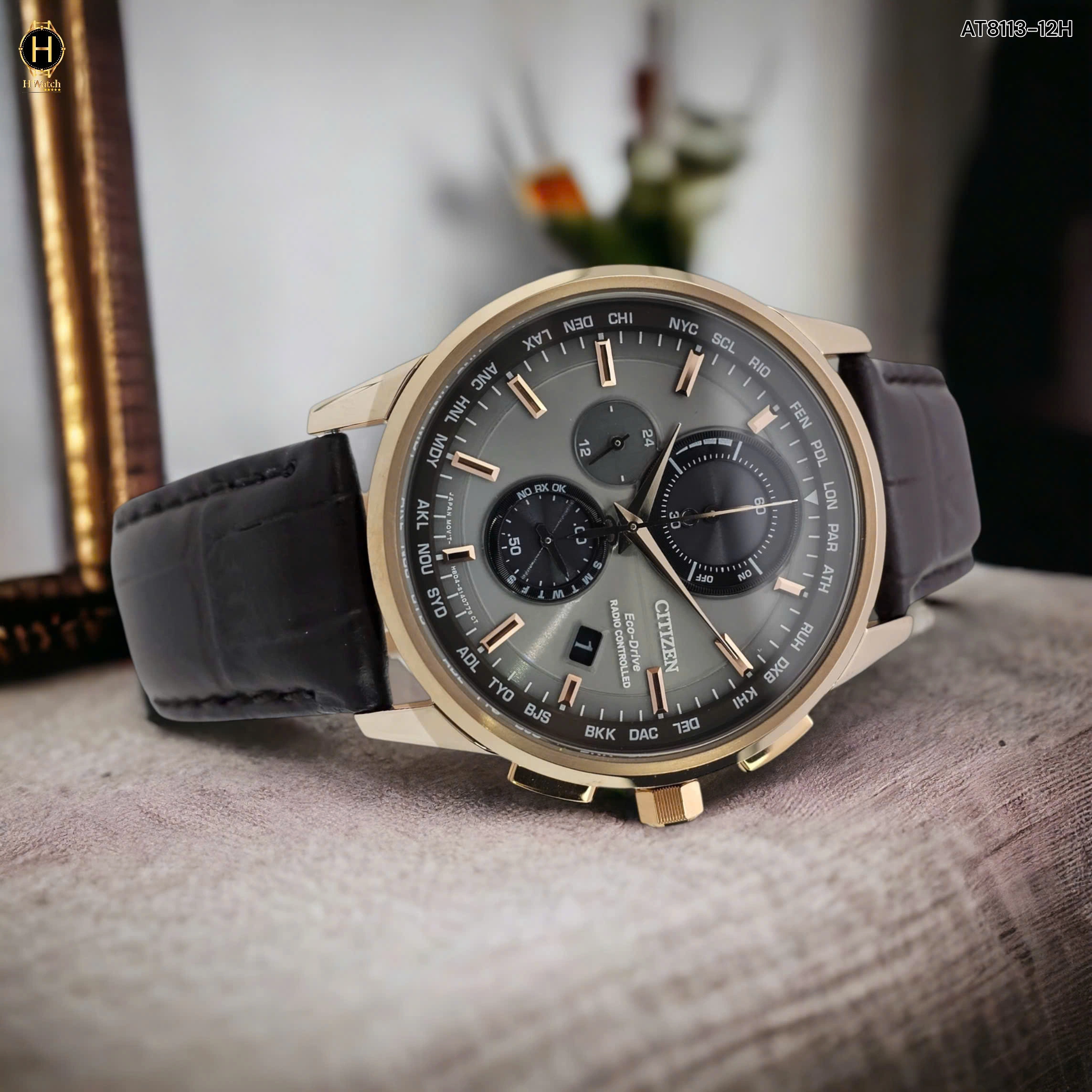 Citizen AT8113-12H Eco Drive Radio Control Watch Men Chronograph 10ATM