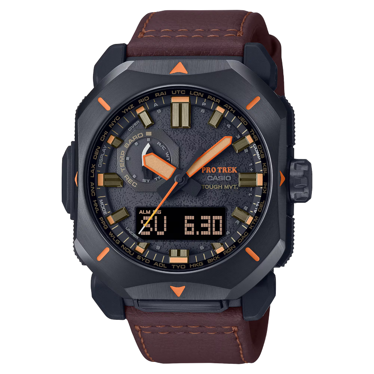 A rugged yet refined Pro Trek designed for outdoor explorers who prefer a classic look.